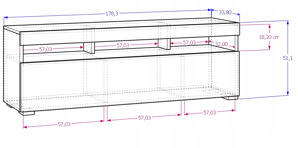 Szafki w rozmiarach 140, 160 i 180cm posiadają dwie przegrody wewnętrzne.