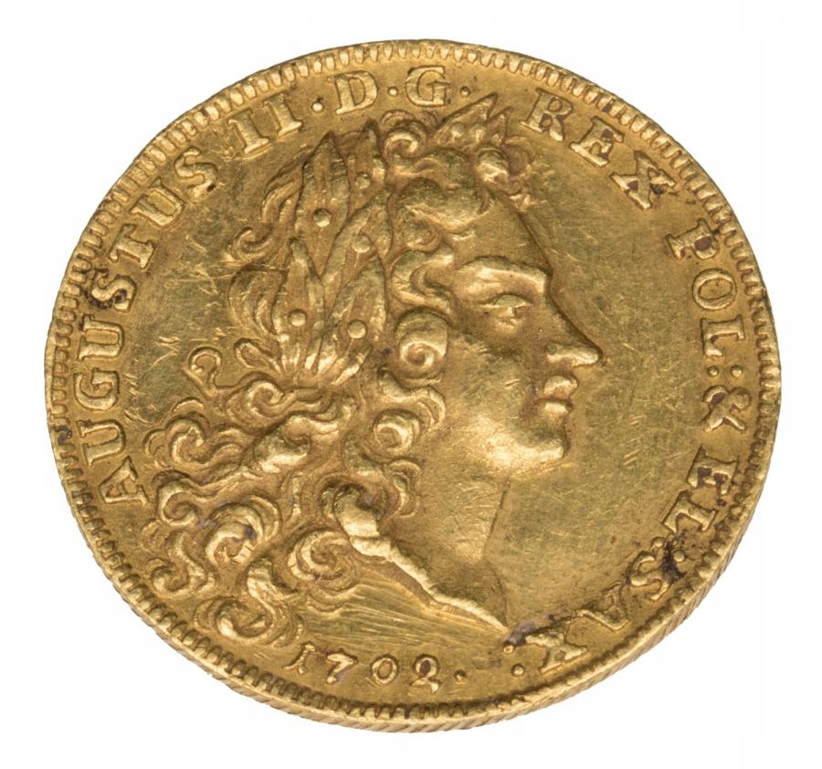awers: AUGUSTUS II.D.G. REX POL:&EL:SAX: .1702 , głowa w prawo w peruce a la lion i w wieńcu laurowym,