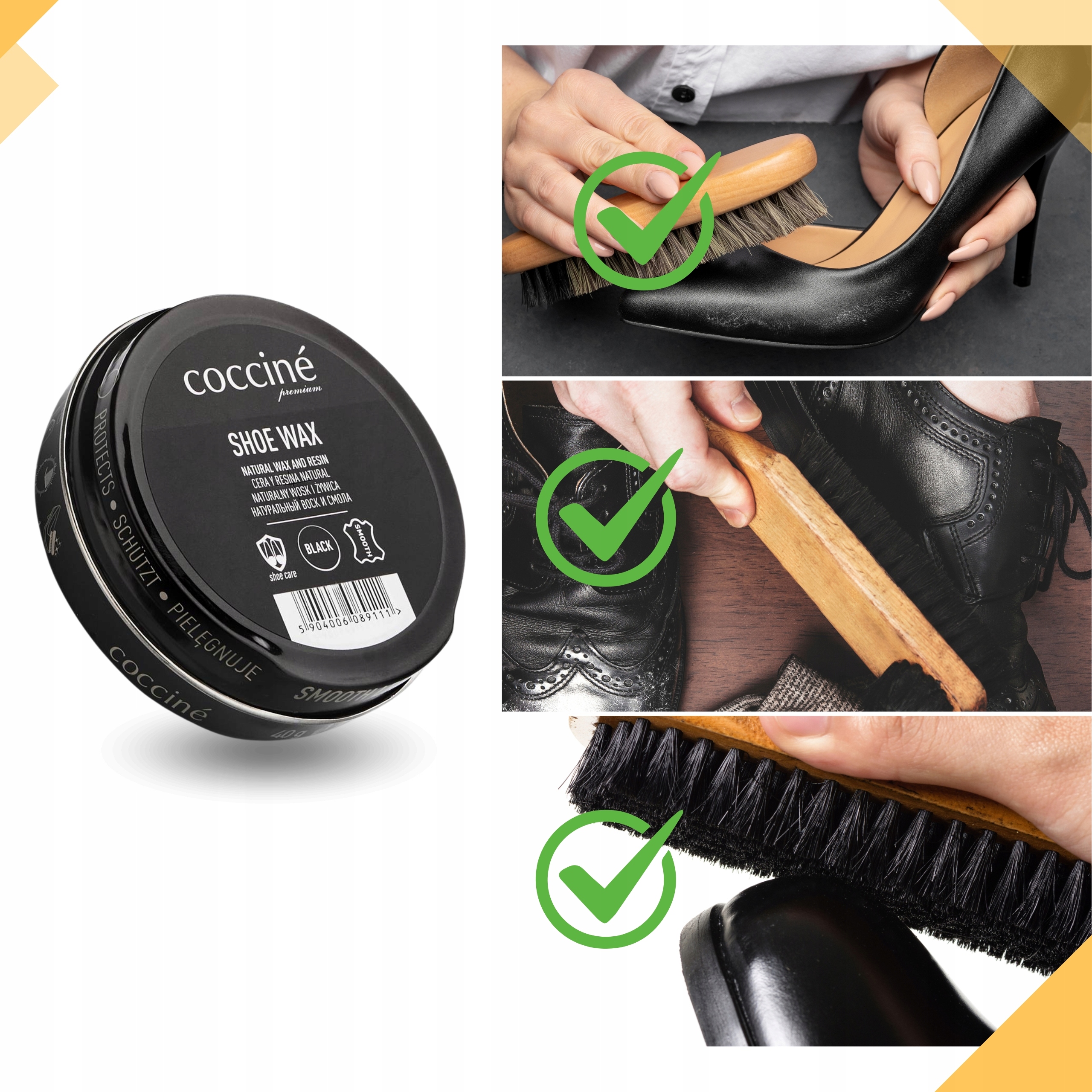 ✅ B - Łatwe polerowanie – przywraca blask butom, eliminując smugi i nadmiar preparatów