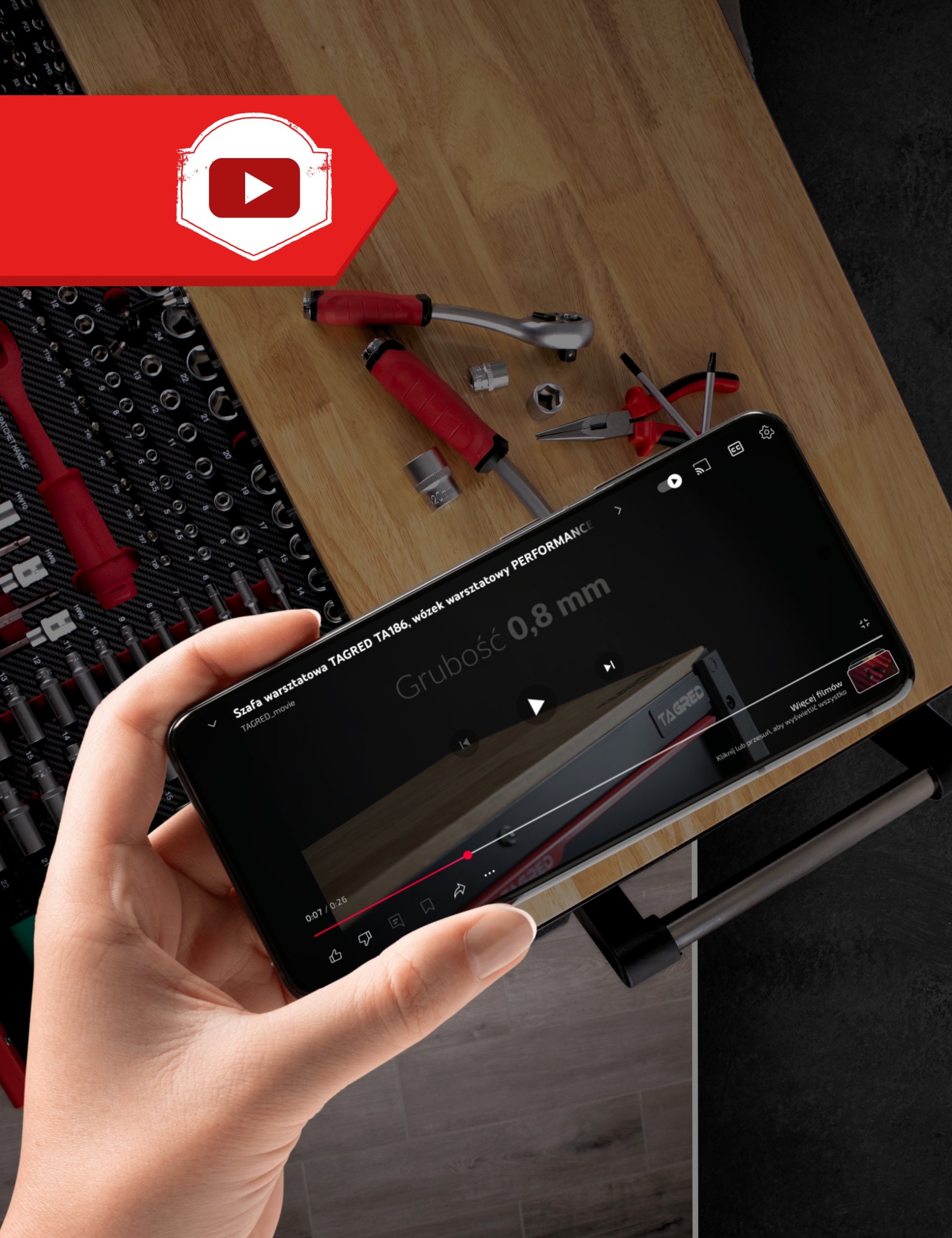 Wózek warsztatowy TA186 to wytrzymałość, funkcjonalność i wygoda. Wykonany ze stali 0,8 mm, zapewnia trwałość w każdych warunkach. 12 szuflad na łożyskach kulkowych z automatycznym domykaniem i centralnym zamkiem zabezpiecza narzędzia. Duże koła z hamulcem oraz ergonomiczny uchwyt ułatwiają transport. Bogate wyposażenie, perforowane ściany na uchwyty i wyściółka EVA chroniąca przed olejami to idealne rozwiązanie dla profesjonalistów i majsterkowiczów.