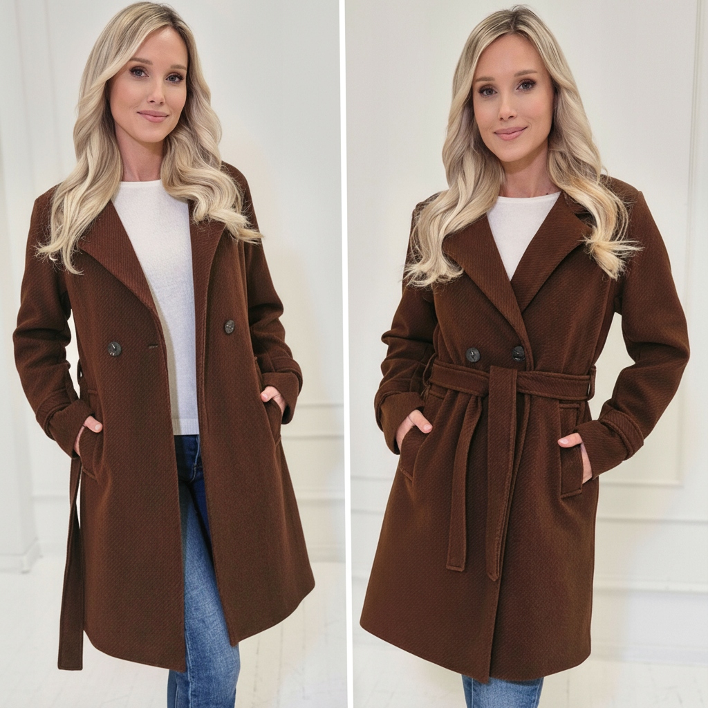 PRZEJŚCIOWY PRĄŻKOWANY PŁASZCZ Z PASKIEM