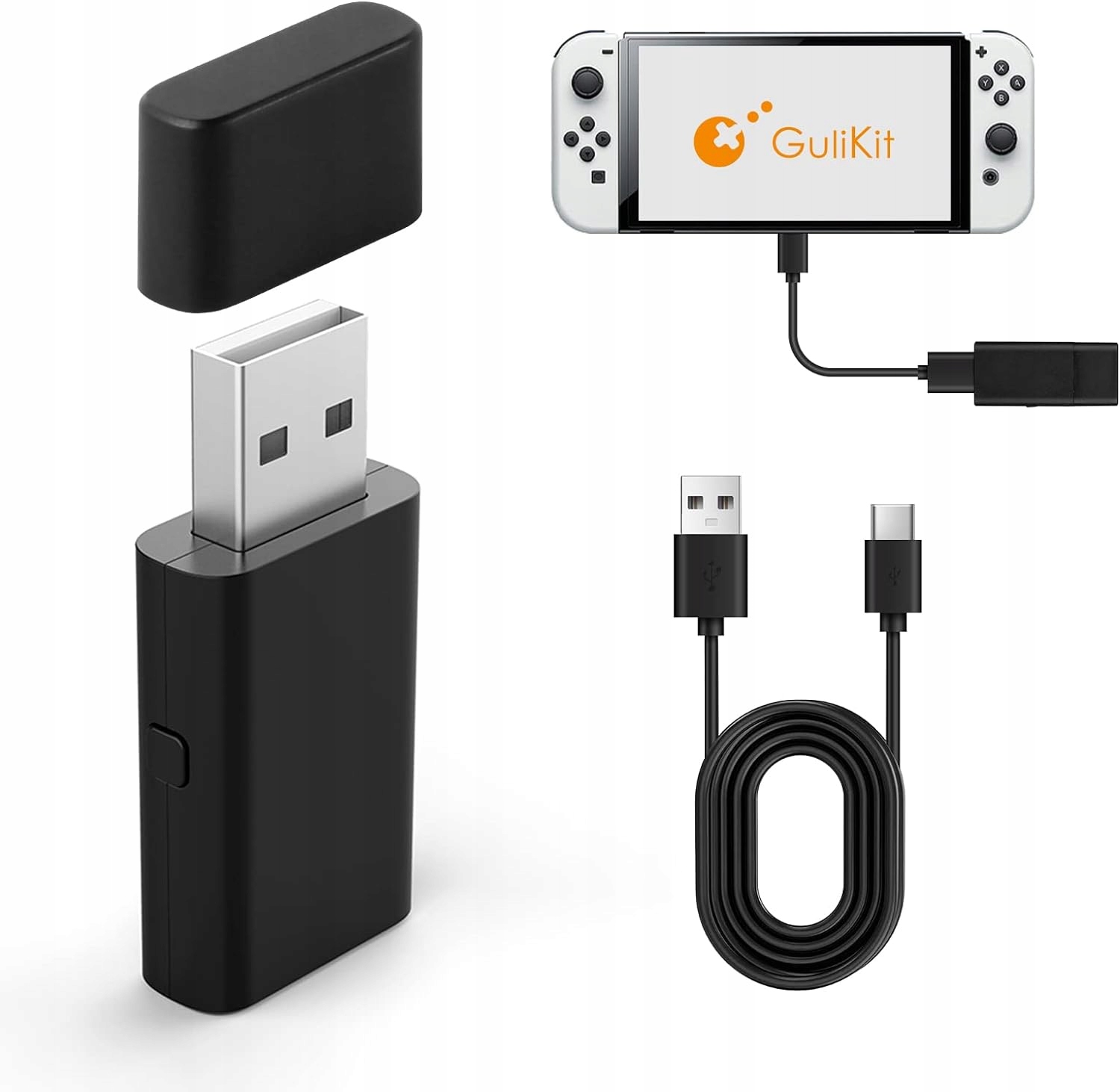 Bezprzewodowy adapter GULIkit – adapter GULIkit jest kompatybilny ze wszystkimi kontrolerami GULIkit / kontrolerami PS4, kontrolerami Switch Pro, kontrolerami XBOX One/Serise. Możesz używać tych kontrolerów idealnie na komputerach PC, Switch, PS4 i konsolach XBOX.