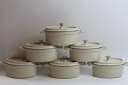 Przedmiotem sprzedaży jest zestaw sześciu żeliwnych małych garnków.