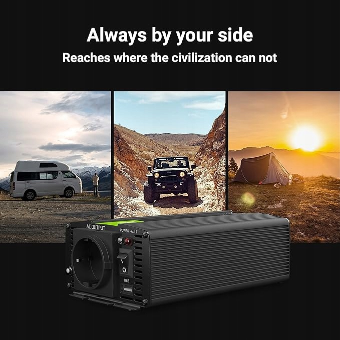 Przetwornica nazywana również inwerterem bądź falownikiem to urządzenie, którego zadaniem jest zmiana napięcia prądu stałego z akumulatora samochodowego lub gniazda zapalniczki na prąd zmienny ~230V. Dokładnie takie samo napięcie znajduje się w każdym domowym gniazdku (Typ E) na terenie całej Europy. Przetwornica jest doskonałym wyborem dla osób wybierających się na wyjazd samochodem, kamperem lub ciężarówką - dzięki niej będziesz mógł swobodnie korzystać ze wszystkich niezbędnych urzadzeń wymagających gniazdka do działania.