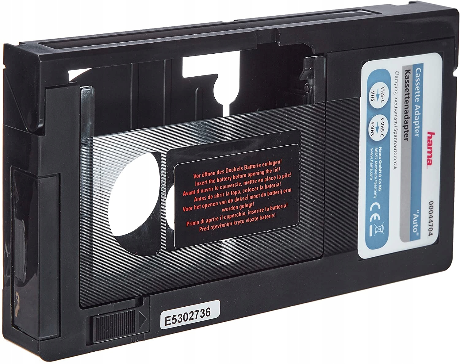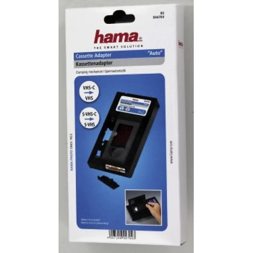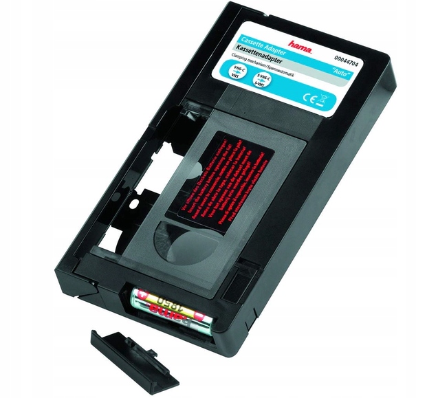 Adapter VHS-C / VHS „Auto'' umożliwia dostosowywanie małych kaset VHS-C do standardu dużych kaset VHS. Mała kaseta pasująca do rejestratora wideo Wystarczy włożyć, zamknąć pojemnik kasety i mała kaseta VHS-C zostanie automatycznie powiększona do formatu VHS. Oczywiście, adapter to również najlepsze rozwiązanie dla kaset S-VHS-C. Kasetę można umieścić w odtwarzaczu i rozpocząć odtwarzanie filmu.