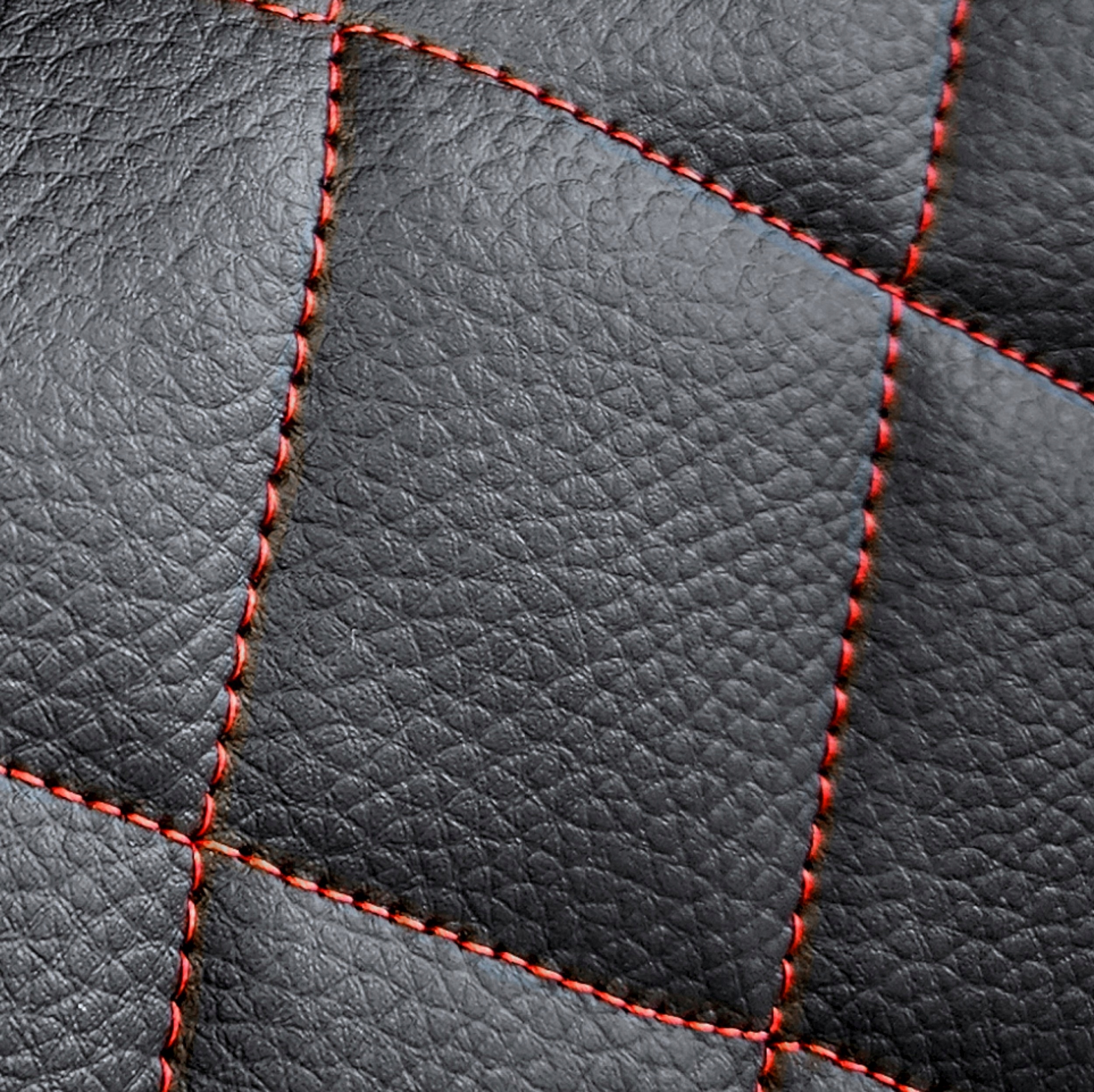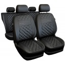 Pokrowce PERFECT-LINE wykonane są z wysokogatunkowej eko skóry o fakturze naśladującej skórę naturalną. Środkowa część pokrowców wykonana jest z grubej eko skóry starannie pikowanej w kształt rombów ozdobną nicią.