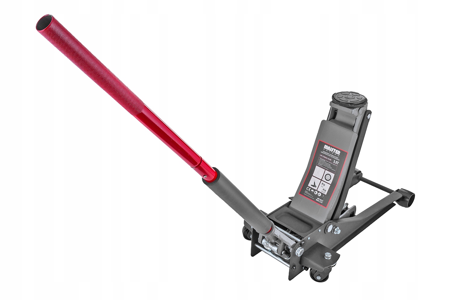 Podnośnik wyposażony jest w stalowe koła osi przedniej oraz łożyskowane koła skrętne osi tylnej.