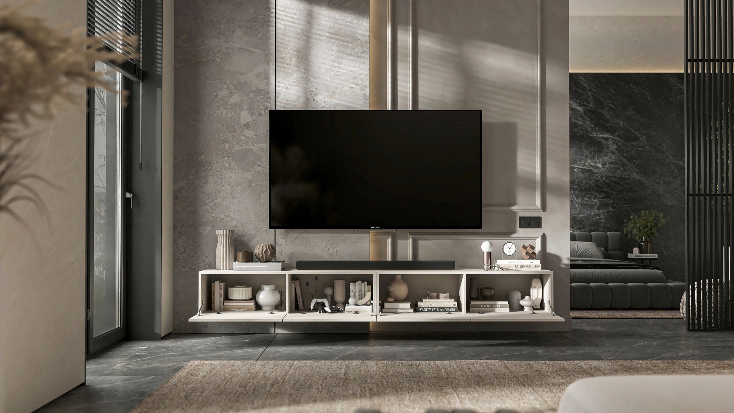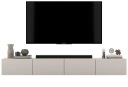 Zestaw dwóch nowoczesnych szafek w eleganckim, matowym kolorze kaszmir, tworzących razem spójną i stylową całość. Łącznie oferują cztery przestronne, zamykane komory, zapewniając dużą pojemność i funkcjonalność. Szafki zostały umieszczone obok siebie, tworząc długi, efektowny mebel, który doskonale komponuje się z nowoczesnymi wnętrzami. Wyposażone w uchylne drzwiczki z mechanizmem spowalniającym ich opadanie, co zapewnia wygodny i bezpieczny dostęp do wnętrza.Brak widocznych uchwytów nadaje szafce estetyczny i elegancki wygląd. To doskonały wybór dla osób ceniących połączenie nowoczesnego designu z funkcjonalnością.