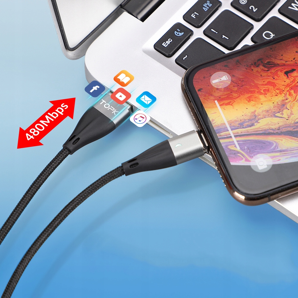 Kabel magnetyczny marki TOPK to idealnie rozwiązanie dla osób, które szukają wygody podczas przesyłania danych lub ładowania urządzeń.
