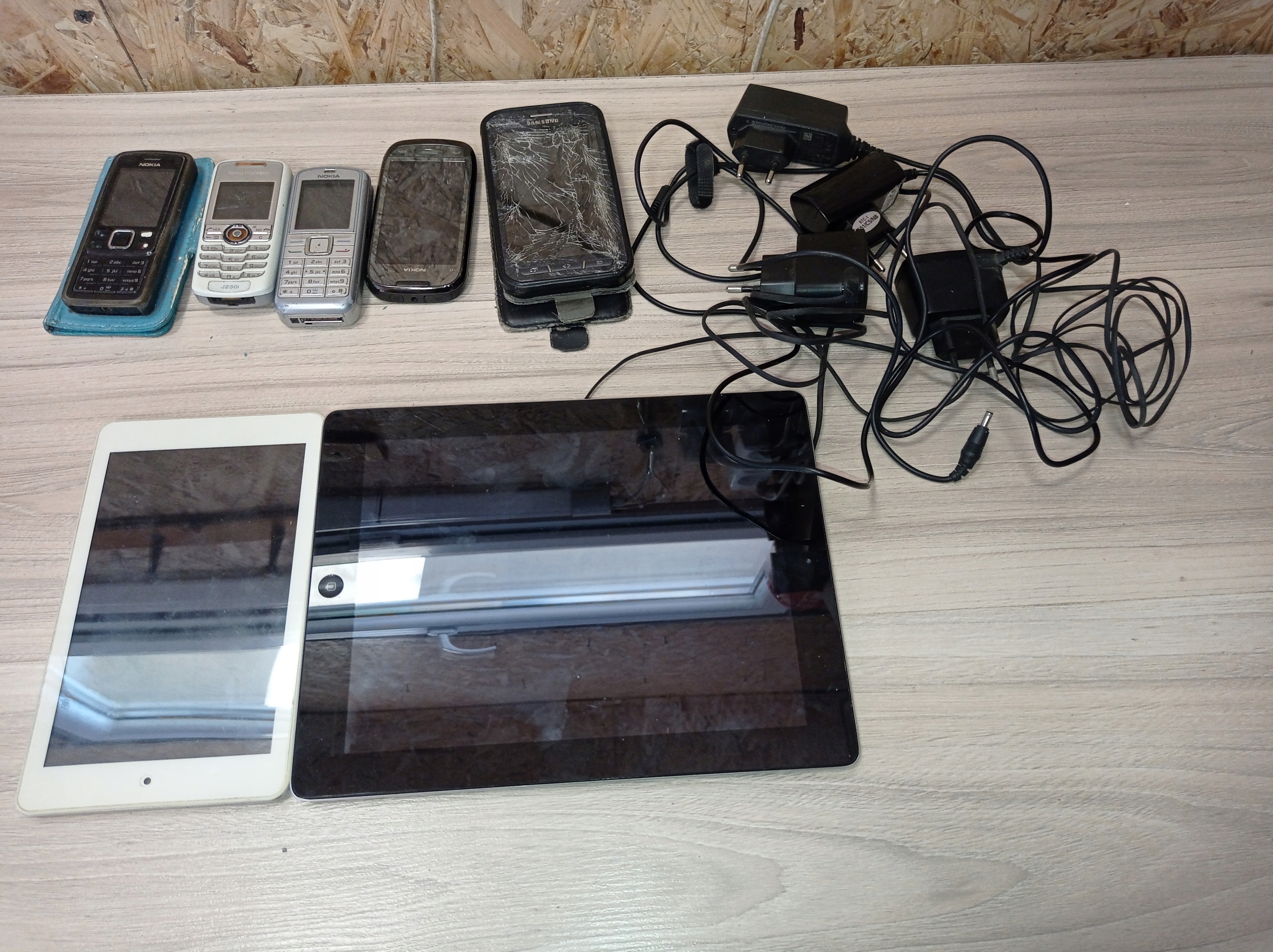 Przedmiotem sprzedaży jest widoczny na zdjęciach zestaw 7 starych telefonów.