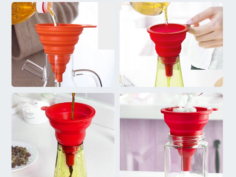 Lejki dzięki materiałowi, z którego zostały wykonane są niezwykle elastyczne i zajmują bardzo mało miejsca podczas przechowywania ich w samochodzie, kuchni czy szufladzie. Ponadto lejki składają się jak harmonijka w zupełnie płaski kształt.