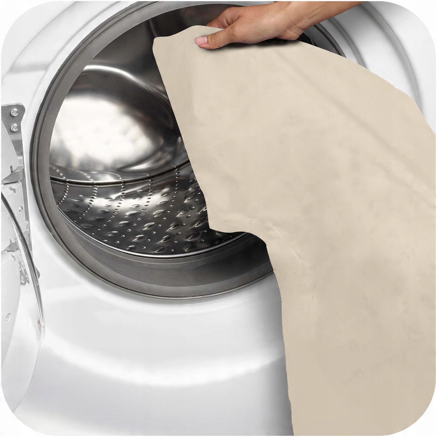Zalecamy pranie samej poszewki bawełnianej. Wkład z włókien poliestrowych można prać ręcznie lub w pralce w delikatnym cyklu, w niskiej temperaturze, pamiętając o dokładnym wysuszeniu. Regularne pranie poszewki pomaga w utrzymaniu higieny.