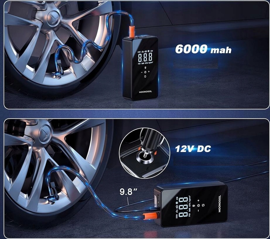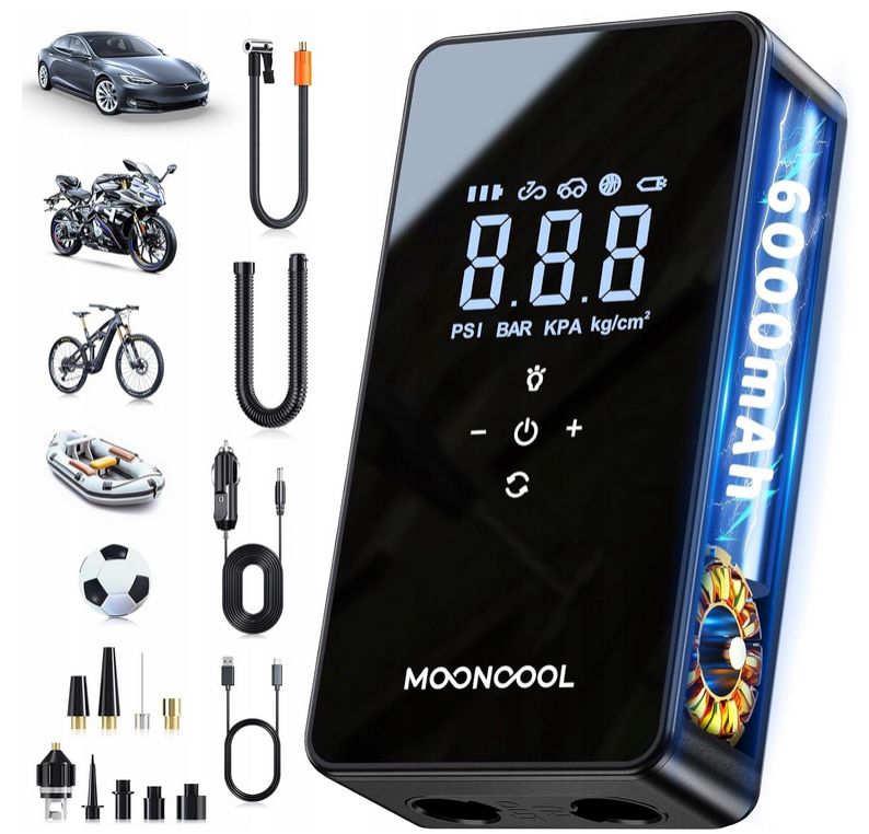 MOONCOOL AP10 Elektryczna Akumulatorowa Pompka 12 V, 6000 mAh - POWERBANK