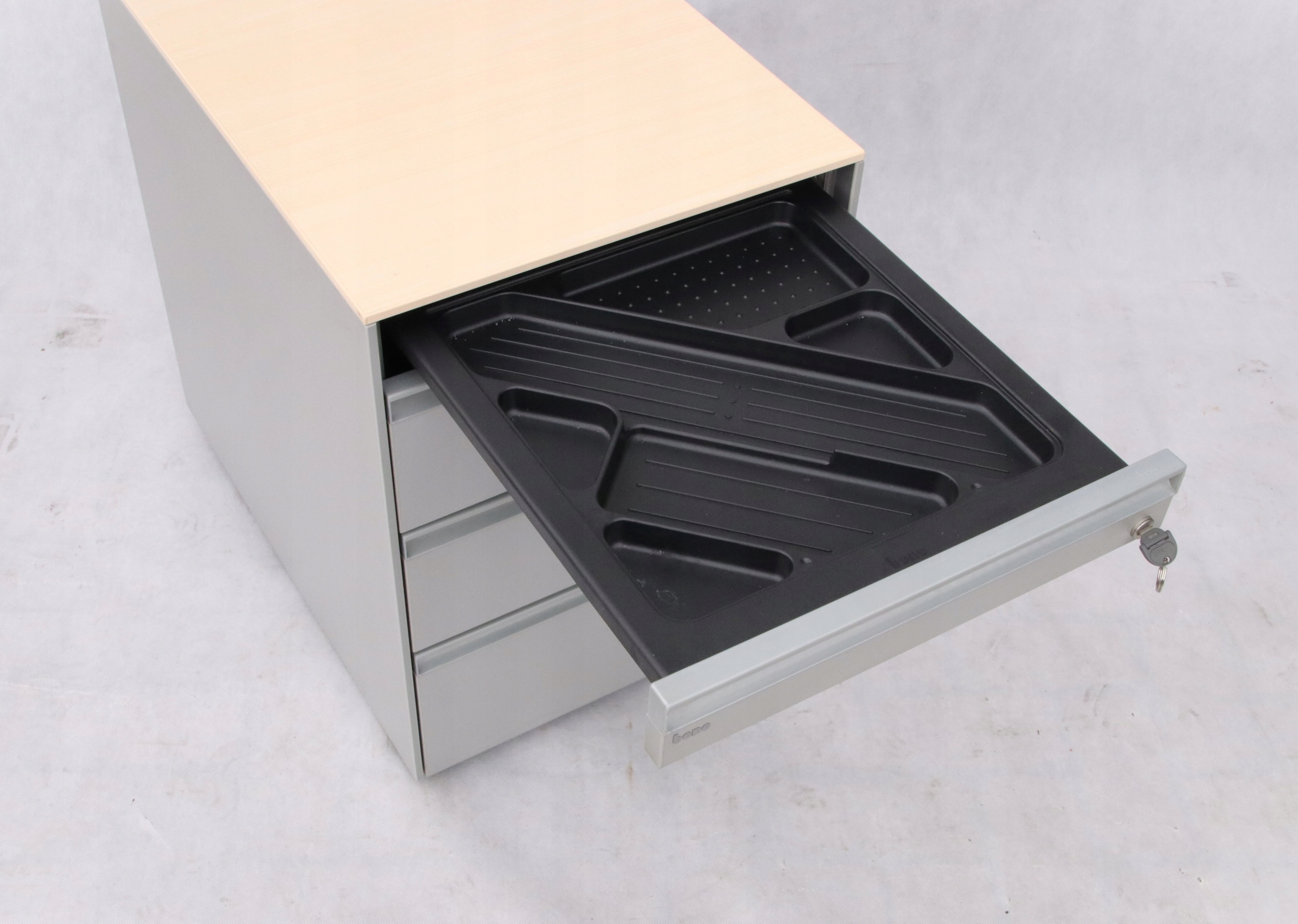 Kontenerek Bene wykonany z wysokogatunkowych materiałów. Organizer posiada 4 szuflady, które pomogą Ci utrzymać porządek w biurowych drobiazgach. Na spodzie kontenerka kółka umożliwiające swobodne przestawianie go, a możliwość blokady pozwala na stabilne ustawienie w przestrzeni pod biurkiem.