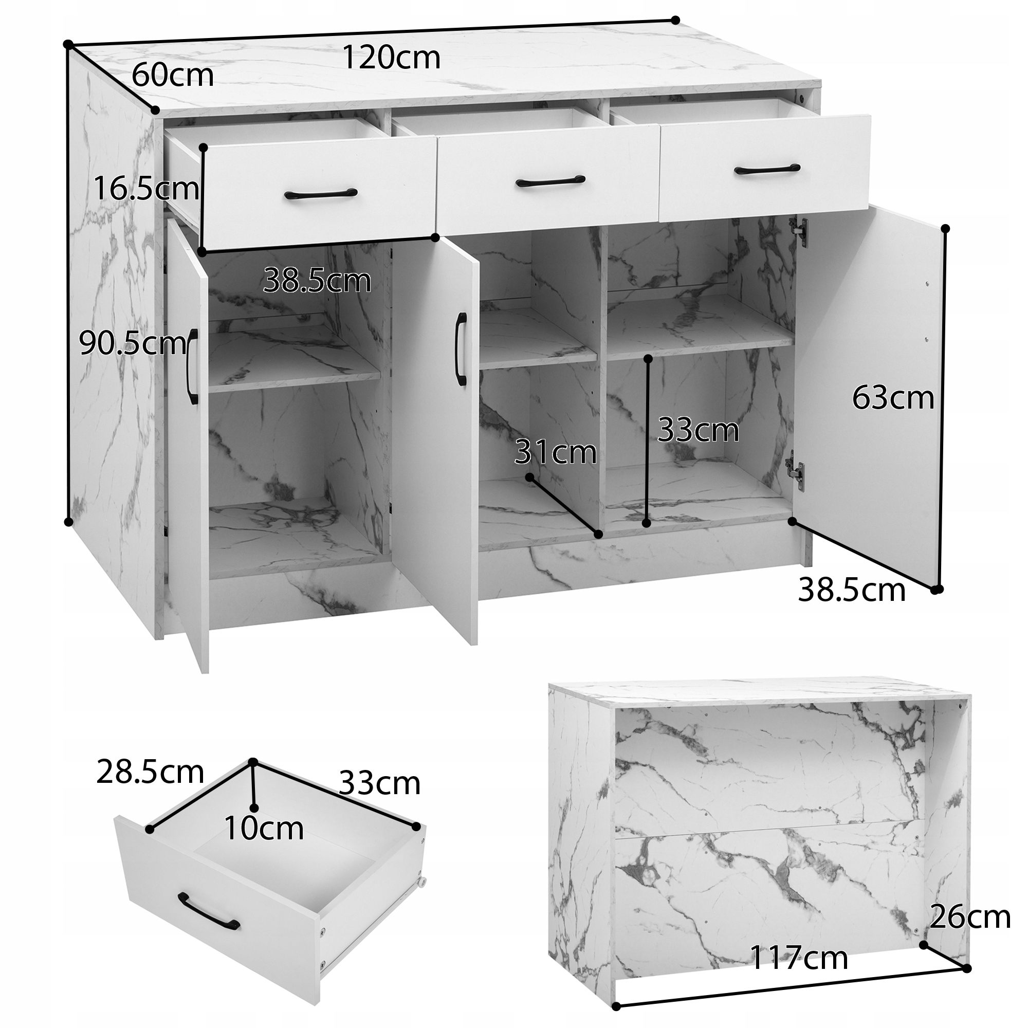 Большой кухонный остров 120 x 60 x 90,5 см, 3 ящика и 3 двери, узор из белого мрамора, регулируемые полки, бесшумные ящики, дизайн бара-стильные и практичные кухонные принадлежности