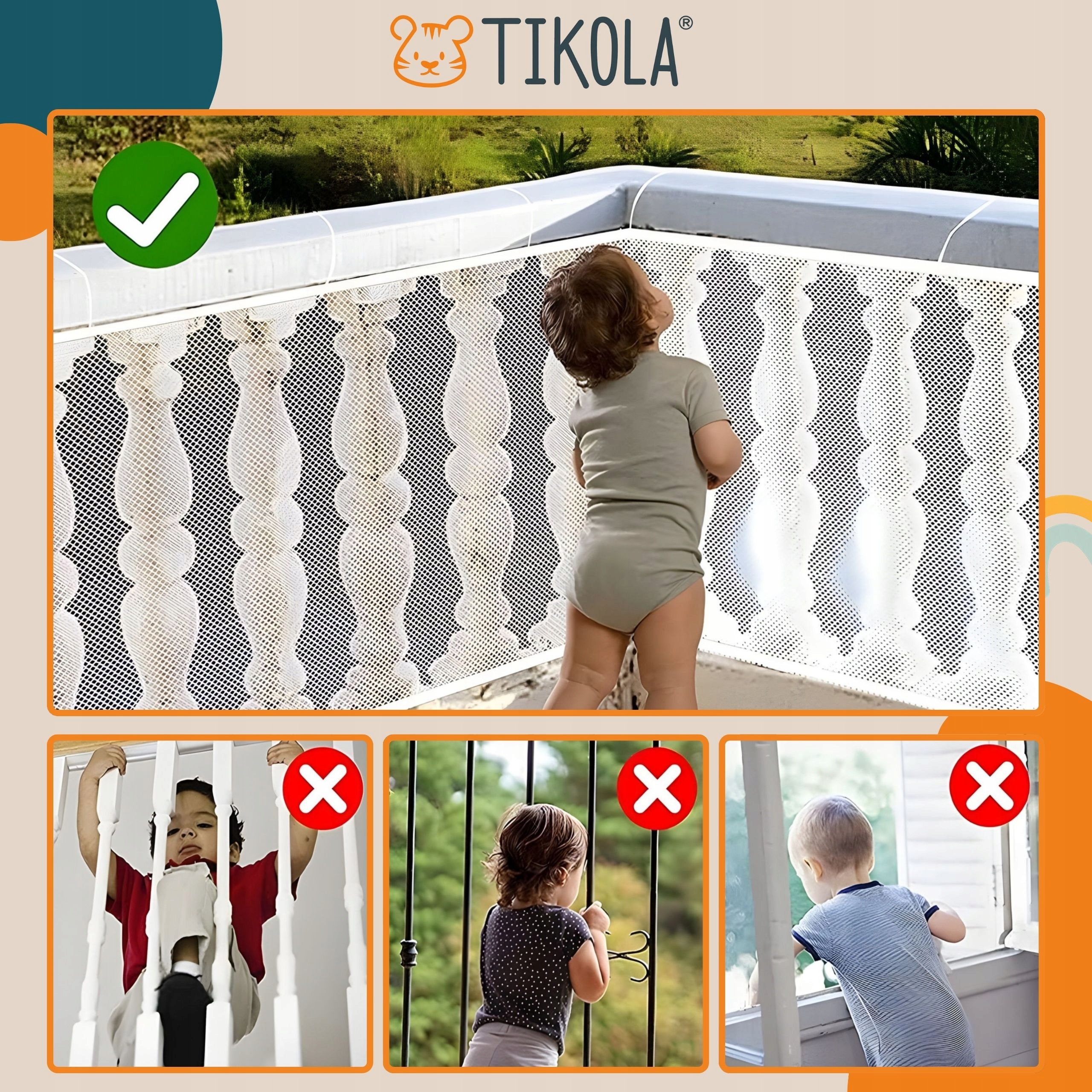 Ta siatka tworzy fizyczną barierę, bez ingerencji w konstrukcję balustrady.