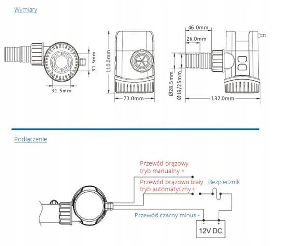 POMPA ZĘZOWA AUTOMATYCZNA SEAFLO 1100GPH - Najnowszy model pompy zęzowej, z elektronicznym trybem automatycznym. Oznacza to, że nie wymaga stosowania włącznika pływakowego, gdyż posiada czujnik elektroniczny uruchamiający pompę. W trybie automatycznym, pompa załącza się na pół sekundy co 2,5minuty w zużywając zaledwie 0,25 ampera dziennie. Gdy wyczuje opór, pracuje aż cała woda zostanie usunięta. Może być włączana ręczne za pomocą przełącznika. (podłączamy przewód brązowy +)
