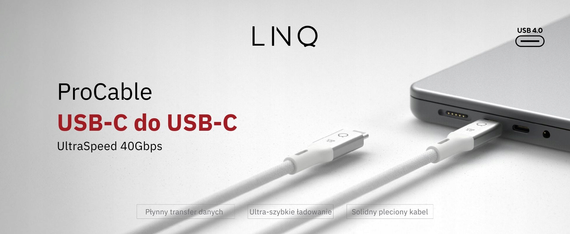 Doświadcz prędkości następnej generacji dzięki temu 1-metrowemu kablowi LINQ USB4 PRO! Kabel ten łączy w sobie superszybki transfer danych z ostrym jak brzytwa obrazowaniem i ultraszybkim ładowaniem. Kabel posiada chip E-mark zapewniający doskonały transfer danych oraz bezpieczne i superszybkie ładowanie 240W PD3.1 EPR.