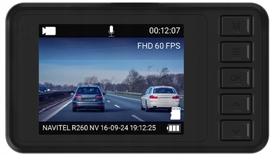 NAVITEL R260 NV posiada 2-calowy wyświetlacz IPS o szerokim kącie widzenia, zapewniający doskonałą czytelność z każdego miejsca w samochodzie. Urządzenie jest zasilane z sieci pokładowej auta przez kabel USB-C. Wideorejestrator obsługuje karty microSD klasy U3 i wyżej o pojemności do 256 GB.