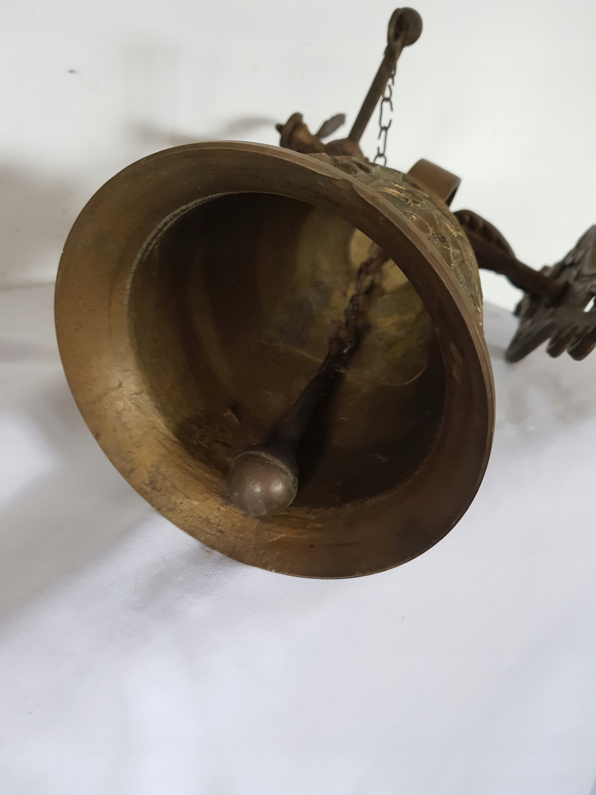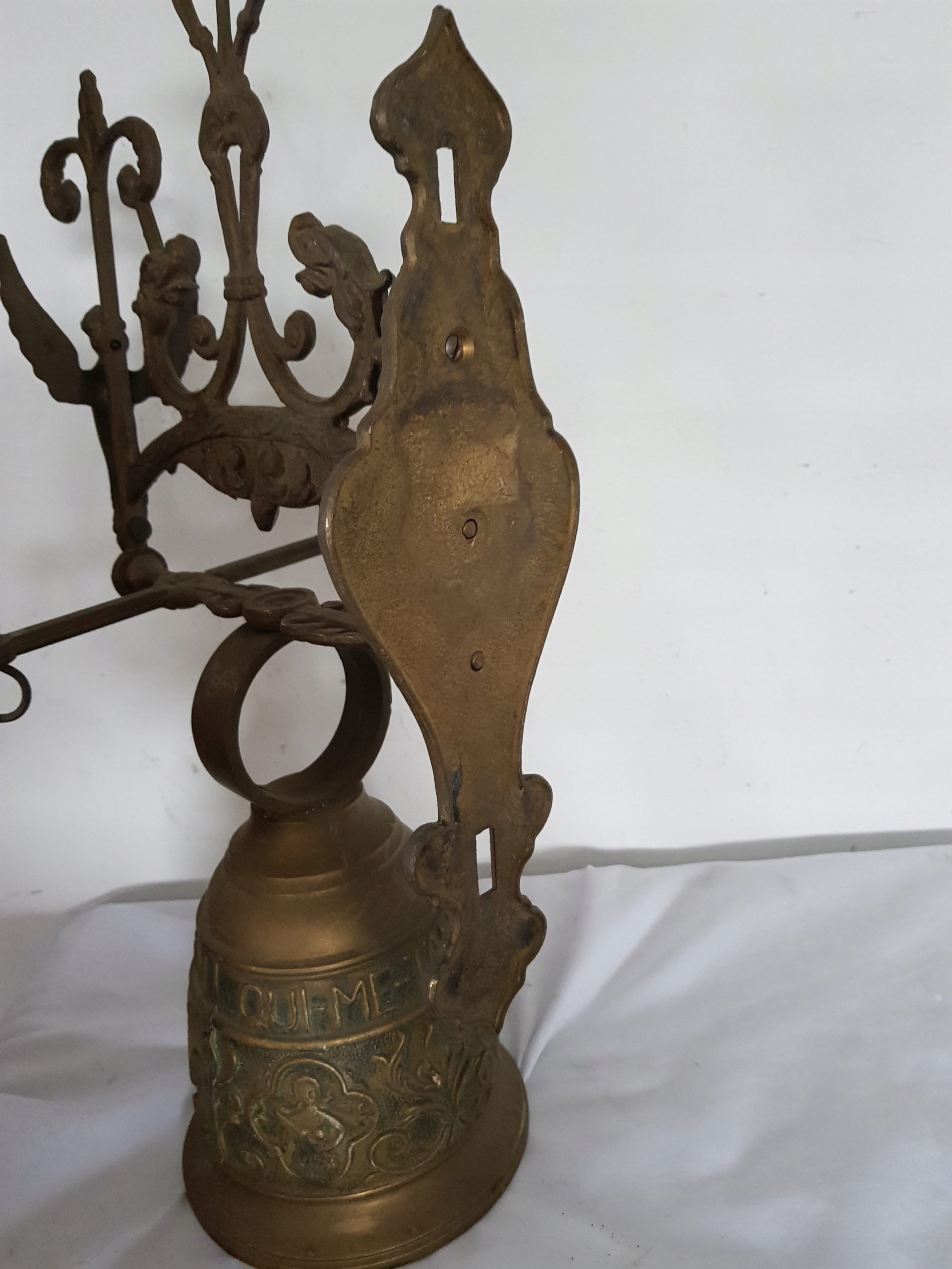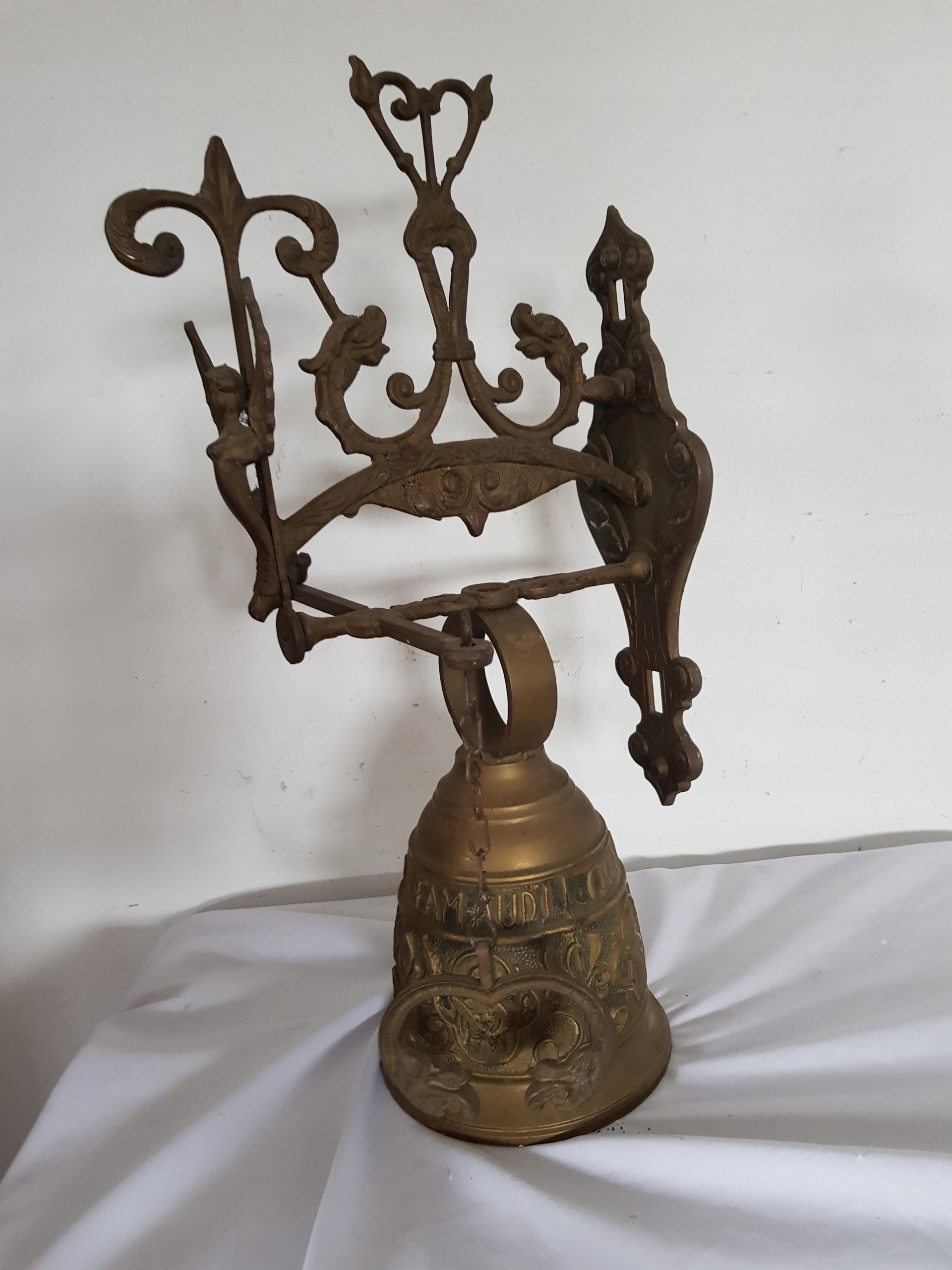 Wysokość 43 cm, szerokość 20 cm, wysokość samego dzwonka bez koła 15.5 cm, średnica 13.5 cm, waga 3.4 kg. Zapraszam na pozostałe moje aukcje..