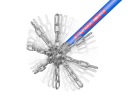 GŁOWICA Z LIN STALOWYCH - jest to innowacyjny typ głowicy czyszczącej. Jej zaletą jest DUŻA siła czyszczenia oraz dostęp do bardzo ciasnych prześwitów w kominie. może mocno złożyć się i wcisnąć tam, gdzie szersze głowice nie przejdą. Po rozkręceniu osiąga średnice ok 300mm - nadaje się więc do czyszczenia większości kominów o różnych średnicach i kształtach. Jest uniwersalna - można czyścić nią kominy murowane, ceramiczne oraz stalowe. Posiada wymienne wkłady stalowe - bardzo szybko wymienialne - wystarczy odkręcić 1 śrubę.