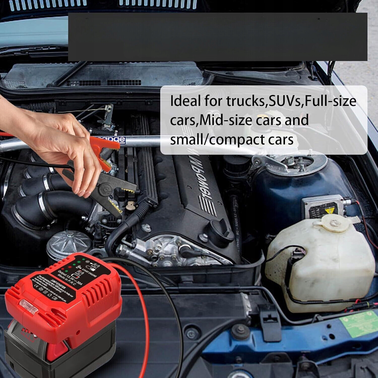 【Kompatybilny z akumulatorami Milwaukee 18 V】 Adapter Charegr kabla skokowego jest pomocny w uruchomieniu, kompatybilny z akumulatorami milwaukee 18 v Akumulatory litowo-jonowe 18 V 48-11-1820 48-11-1822 48-11-1840 48-11-1850 48-11-1852 48-11-1860 48-11-1862 i więcej(Uwaga:Bateria nie jest dołączona). Do uruchamiania skoku samochodu za pomocą akumulatora narzędziowego, silnik12V Auto Battery Booster.