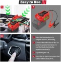 【Łatwy w użyciu】 Najpierw naładuj akumulator samochodowy przez około 2 minuty, a następnie uruchom samochód. ①-Podłącz czerwony klips akumulatora kabla rozruchowego do bieguna dodatniego (+) pojazdu, a czarny do bieguna ujemnego (-); ②-Podłącz zworkę do gniazda rozrusznika rozruchowego; ③-Uruchom samochód i zdemontuj Dolny zacisk. (Proszę postępować zgodnie z prawidłowymi krokami po przeczytaniu instrukcji użytkowania).