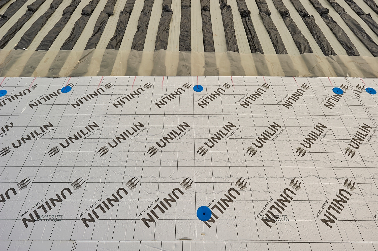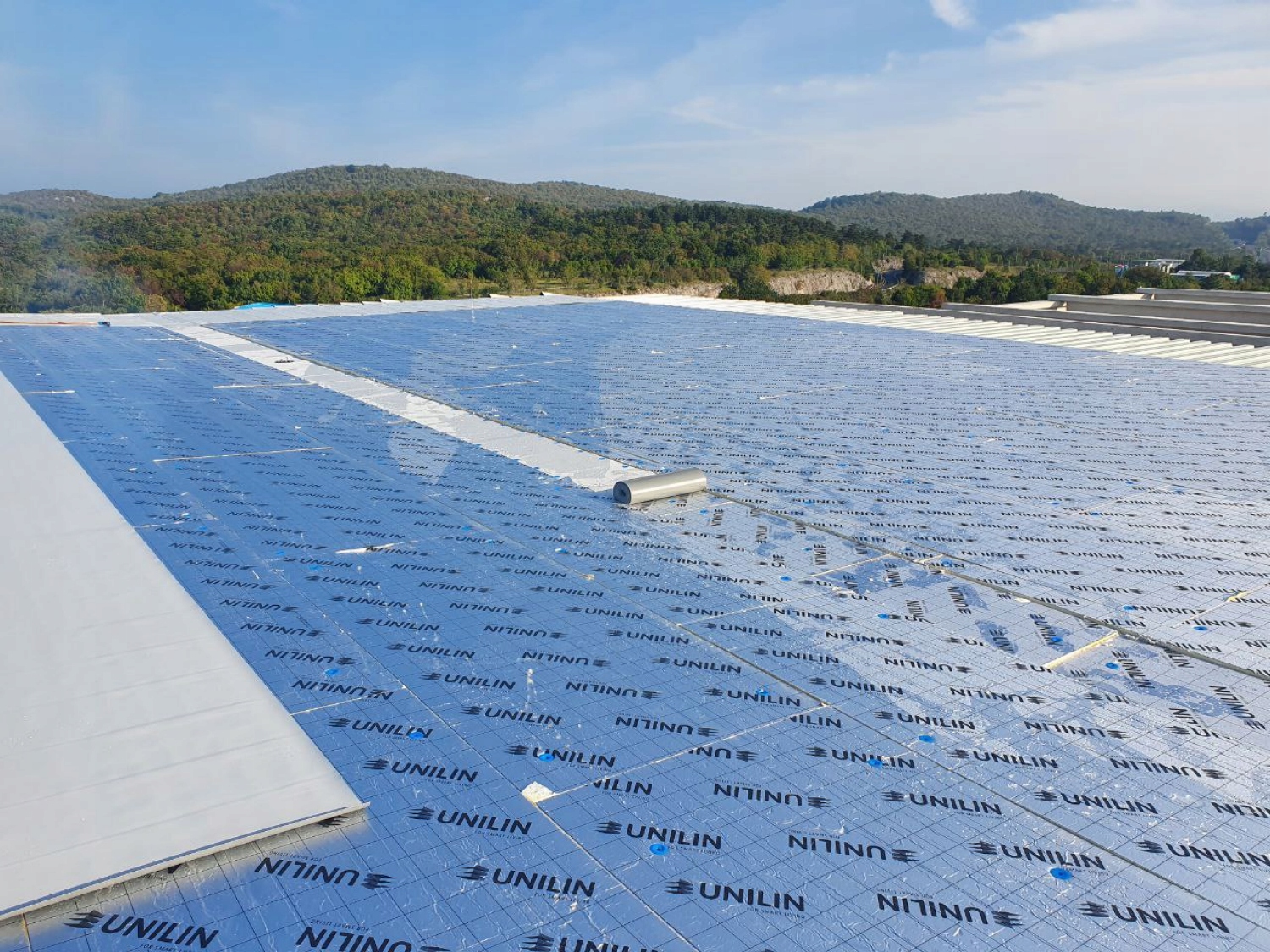 Płyta izolacyjna PIR Euroklasa E obustronnie wykończona wielowarstwową okładziną z laminatu gazoszczelnego.