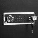 Ostrzega alarmem, jeśli nieprawidłowe hasła zostaną wprowadzone trzy razy lub jeśli sejf doświadczy silnego wpływu, zapewniając kompleksową ochronę cennych przedmiotów.