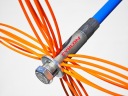 GŁOWICA Z LIN STALOWYCH ZMIOTKA KOMINOWA - jest to innowacyjny typ głowicy czyszczącej. Jej zaletą jest siła czyszczenia oraz dostęp do bardzo ciasnych prześwitów w kominie. może mocno złożyć się i wcisnąć tam, gdzie szersze głowice nie przejdą. Po rozkręceniu osiąga średnice ok 300mm - nadaje się więc do czyszczenia większości kominów. Jest uniwersalna - można czyścić nią kominy murowane, ceramiczne oraz stalowe. Posiada wymienne wkłady stalowe - bardzo szybko wymienialne - wystarczy odkręcić 1 śrubę.