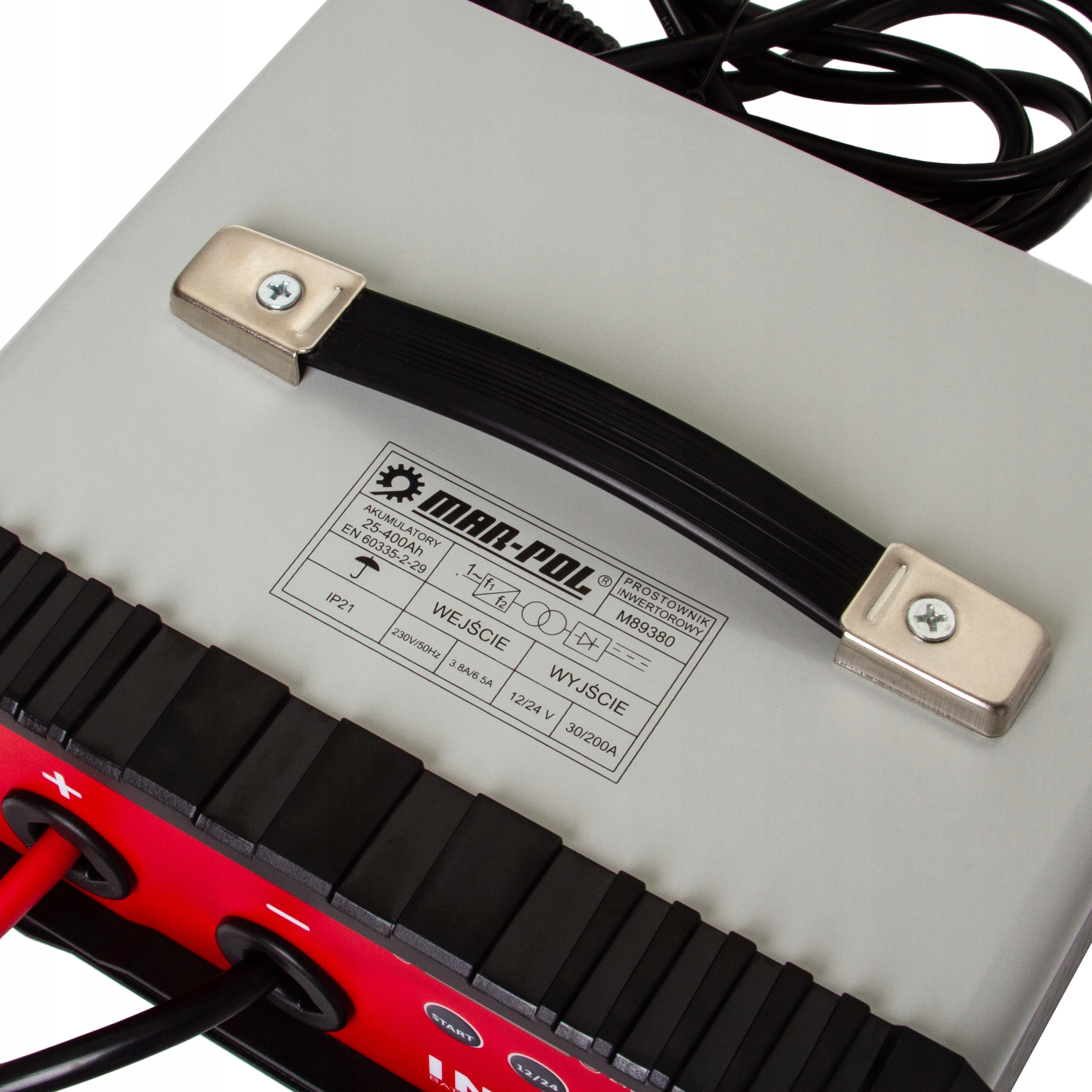 Prostownik inwerterowy MAR-POL® zapewnia możliwość skutecznego i efektywnego ładowania i rozruchu akumulatorów zarówno 12V jak i 24V.