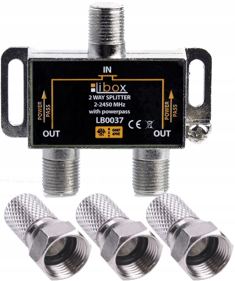 Rozdzielacz sygnału SAT splitter 1xF/2xF Power Pass LB0037 LIBOX​