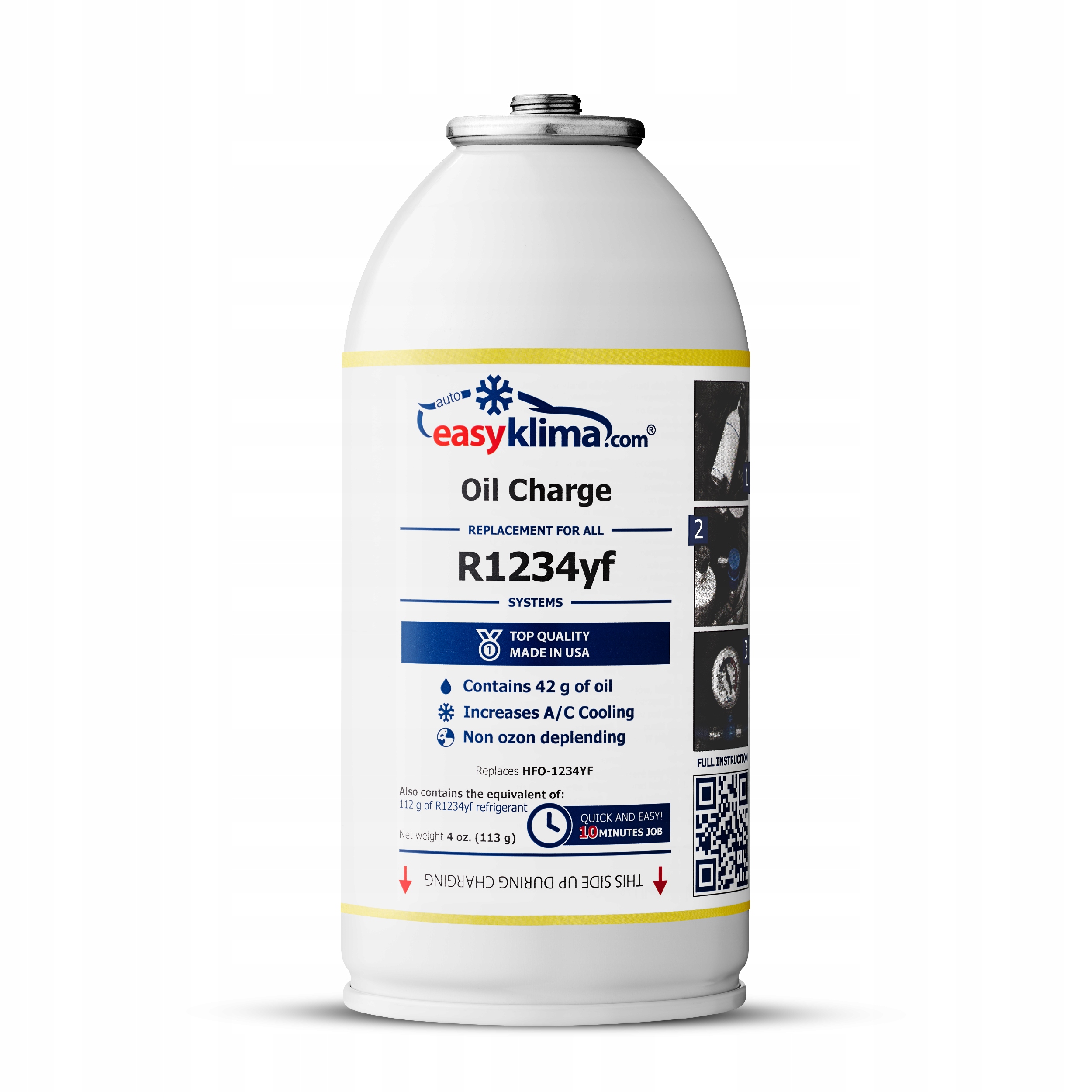 1 puszka (113 g netto) zawiera równowartość 112g gazu R1234yf oraz 42g oleju.