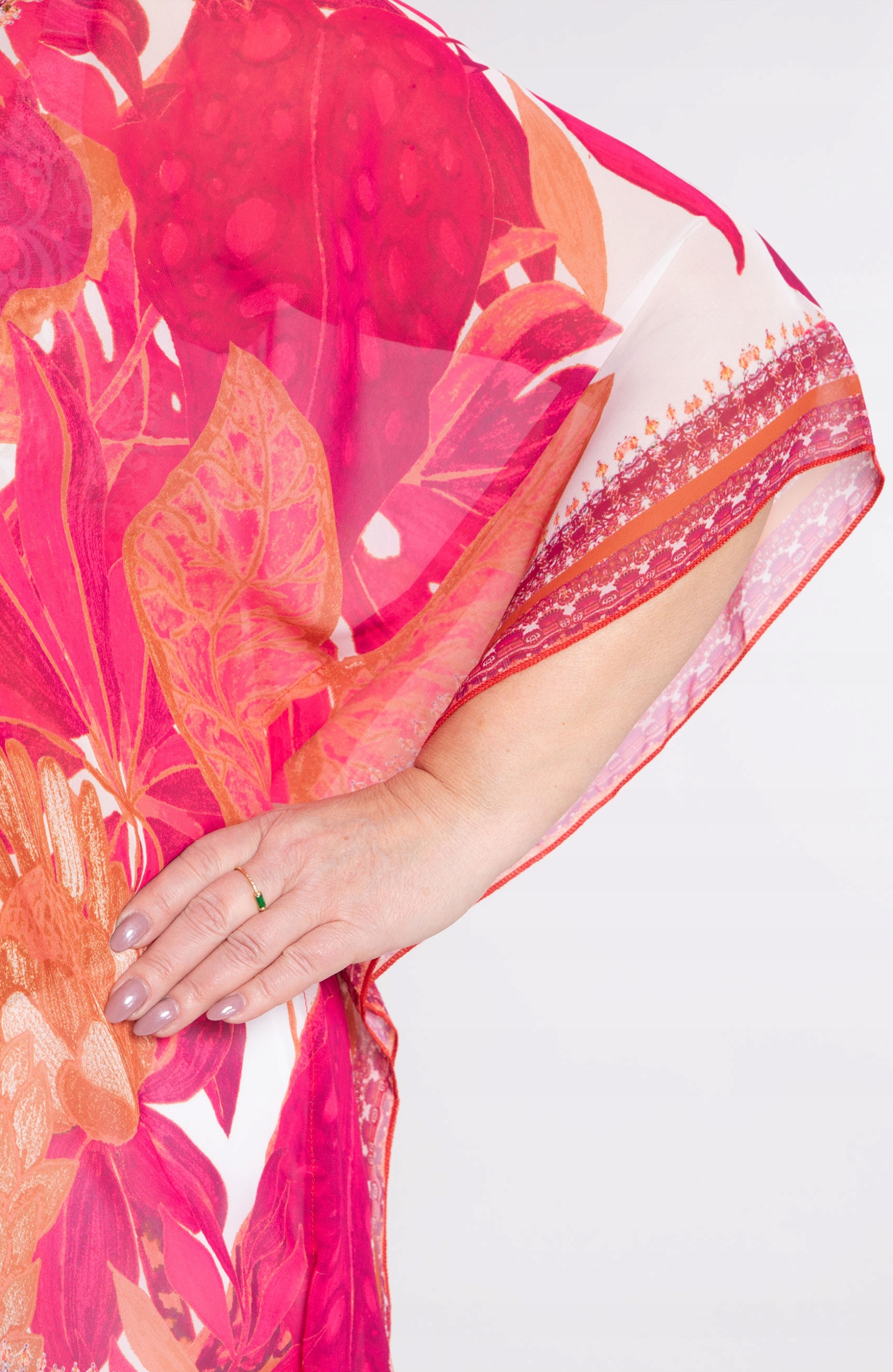 Stylowe pareo, które doskonale sprawdzi się nie tylko na plaży, ale również jako eleganckie okrycie, tworząc niepowtarzalną stylizację na co dzień. Wykonane z lekkiego, przewiewnego materiału, zapewnia komfort i ochronę przed słońcem. Zdobienia na dekolcie w literę „V” dodają szyku i oryginalnego charakteru. Jego luźny fason i delikatny krój pozwala na swobodę ruchów, a ponadto pięknie układa się na sylwetce.