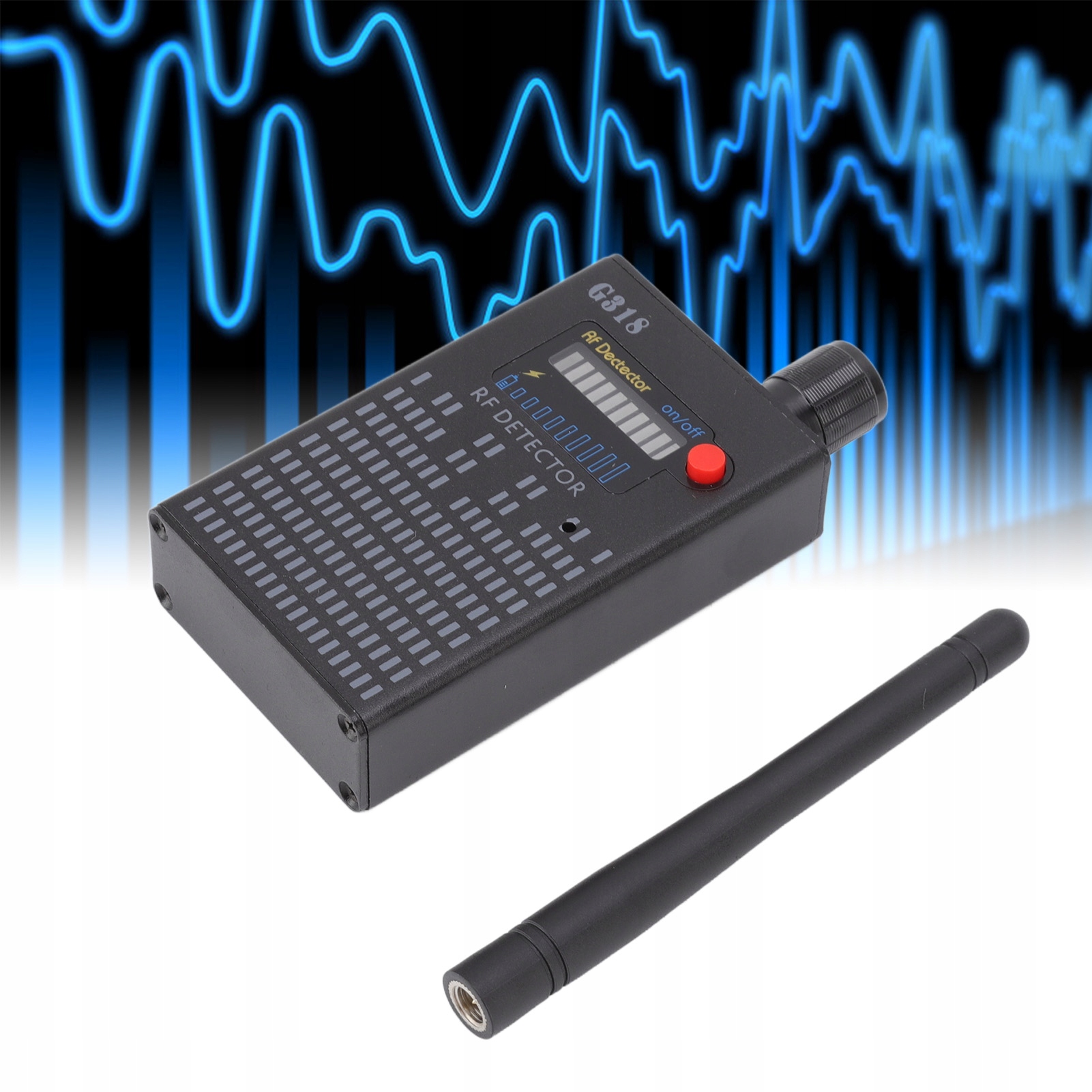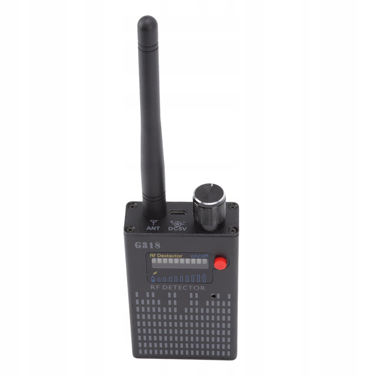 3. Łatwy w użyciu: dźwiękowe i świetlne wskazanie alarmu detektora częstotliwości radiowej, dokładne i niezawodne. 9-poziomowy wskaźnik LED, im bliżej błędu, tym głośniejszy hałas i wyższy poziom diody LED. Wbudowana bateria litowo-polimerowa, w tym zasilacz i kabel USB, jest prostsza i wygodniejsza.