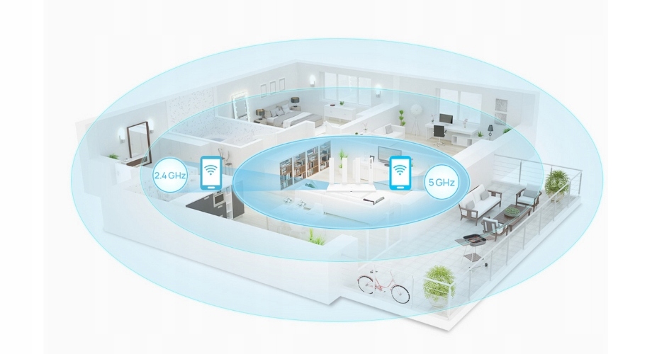• Częstotliwość pracy: 2.4GHz, 5 GHz