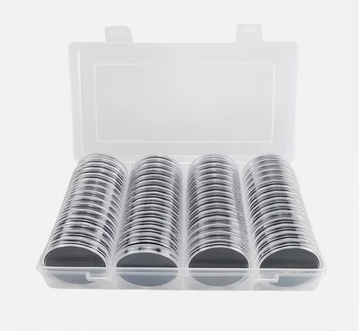 Pokrywa i dno tych przezroczystych kapsuł na monety zatrzaskują się mocno dla ochrony przed kurzem i utlenianiem, ułatwiając ochronę monet; konstrukcja otwarcia półksiężyca jest łatwiejsza do otwarcia i wygodniejsza w użyciu.
