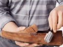 Szczotka dwustronna do czyszczenia butów z nubuku i zamszu. Zamiast tradycyjnego włosia posiada specjalne, wykonane z miękkiej gumy, które przeznaczone jest do czyszczenia nubuku i usuwania plam. Miedziano nylonowe włosie przeznaczone jest do zamszu. Czyści, usuwa kurz i przywraca naturalną strukturę i wygląd materiału. Szczotka skutecznie czyści zamsz lub nubuk nie niszcząc przy tym oryginalnej powierzchni butów
