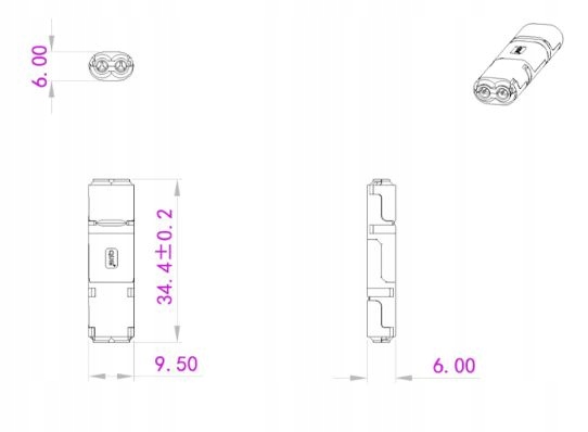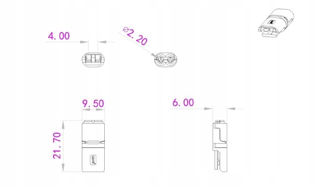 • Rozmiar: ok. 21.7 mm * 9.5 mm * 6 mm