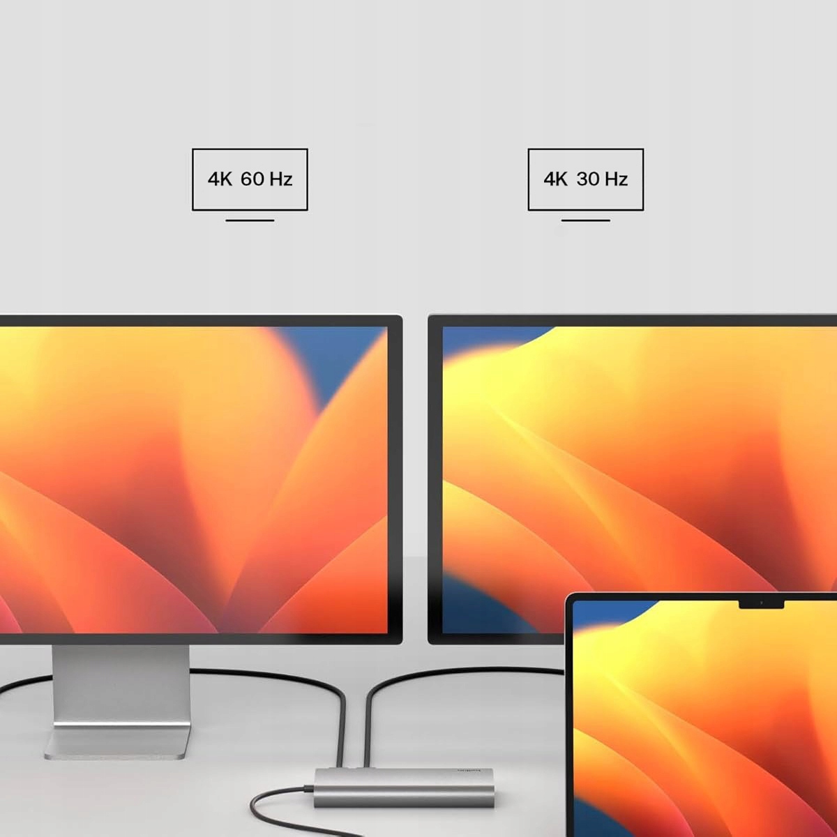 Adapter potrafi obsłużyć do 2 wyświetlaczy na raz, natomiast dostępność różnych portów pozwoli Ci na podłączenie wielu multimediów za pomocą jednego huba, zwiększając Twoją przestrzeń roboczą.