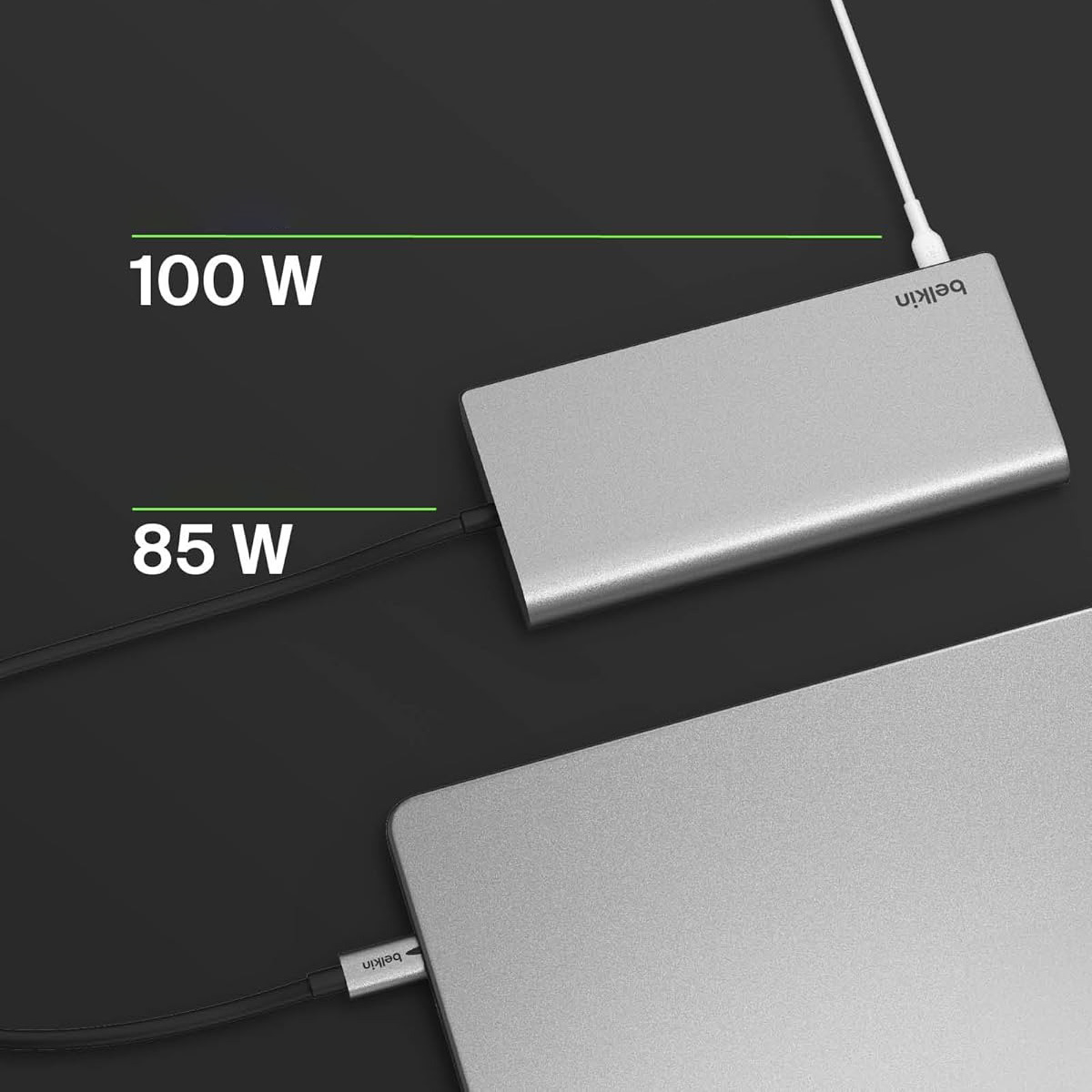 ➡️ Brak ładowarki w zestawie. Do prawidłowego działania wymaga ładowarki sieciowej o mocy minimum 65W by zapewnić ładowanie przelotowe laptopa na poziomie 50W, gdyż 15W zawsze będzie pobierane przez stację na jej własne działanie. Maksymalnie obsługuje ładowarkę 100W, wtedy dla laptopa przekazuje 85W mocy ładowania przelotowego.