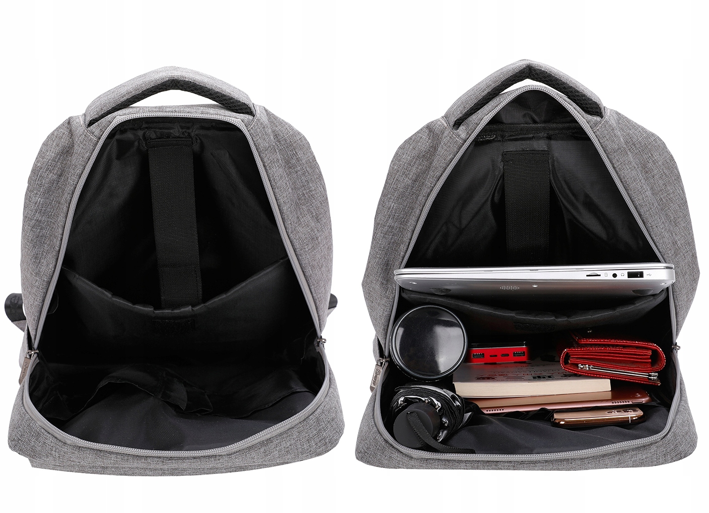 W plecaku znajdziemy główną przegrodę na laptopa, która wewnątrz ma wydzielone dwie mniejsze oraz przednią kieszeń na inne potrzebne rzeczy. Torba typu UNISEX - pasuje do każdej płci.