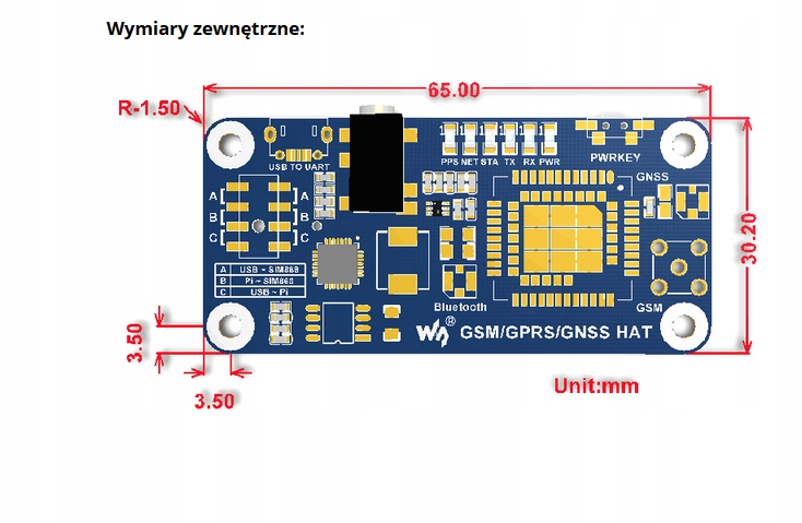 Moduł HAT dla Raspberry Pi z SIM868 GSM GPRS Bluetooth to doskonałe rozwiązanie dla właścicieli Raspberry Pi, którzy potrzebują możliwości komunikacji za pomocą GSM, Bluetooth oraz korzystania z odbiornika GPS: GNSS.