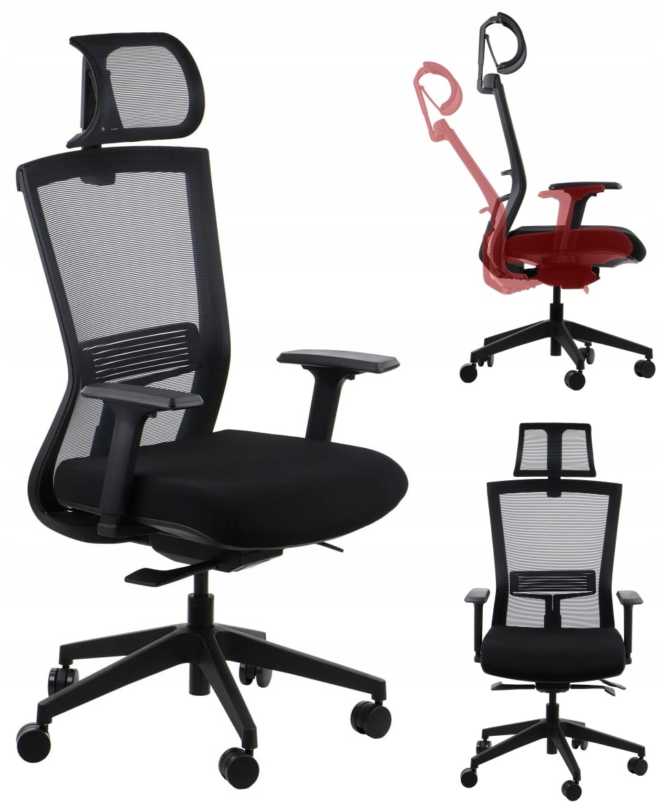 Zagłówek fotela tapicerowany jest siatką - posiada regulację wysokości. Zagłówek jest elastyczny i doskonale wspiera mięśni szyi i karku użytkownika.