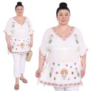 Rozmiar 46-52 obwód w biuście 96-120 cm , obwód w biodrach 120 cm , długość 77 cm , długość rękawa 35 cm , biceps 60 cm