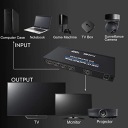 Przełącznik obsługuje wyjście do 1080p przy 60Hz lub 720p przy 60Hz (bez 4k) przez HDMI 2.0. Wyjście kompatybilne z wersją DV1.0. Multiveiwer HDMI nadaje się do urządzeń wejściowych HDMI, komputerów, dekoderów, odtwarzaczy DVD, PS4; do urządzeń z wyjściem HDMI, telewizorów, monitorów, projektorów; szeroko stosowany w systemach wideokonferencji dla wielu użytkowników, monitoringu, grach na żywo, każdym dużym centrum handlowym.
