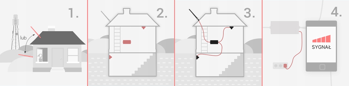 Wzmacniacz sygnału jest dostarczany w pełnym zestawie ze wszystkimi komponentami potrzebnymi do instalacji i użytkowania. Bez problemu uda Ci się go zamontować bez pomocy instalatora, gdyż system działa w oparciu o technologię Plug & Play.