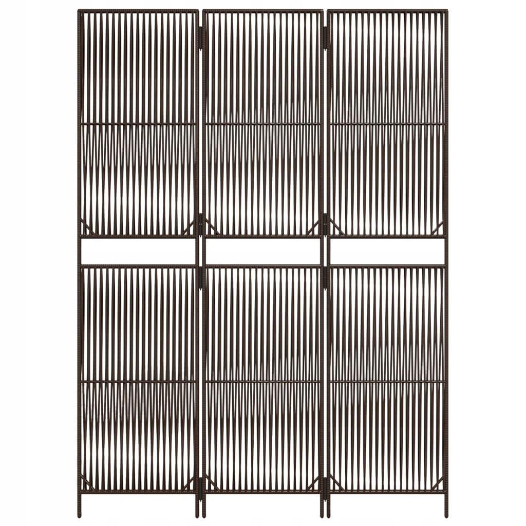 vidaXL Parawan 3-panelowy, brązowy, polirattan