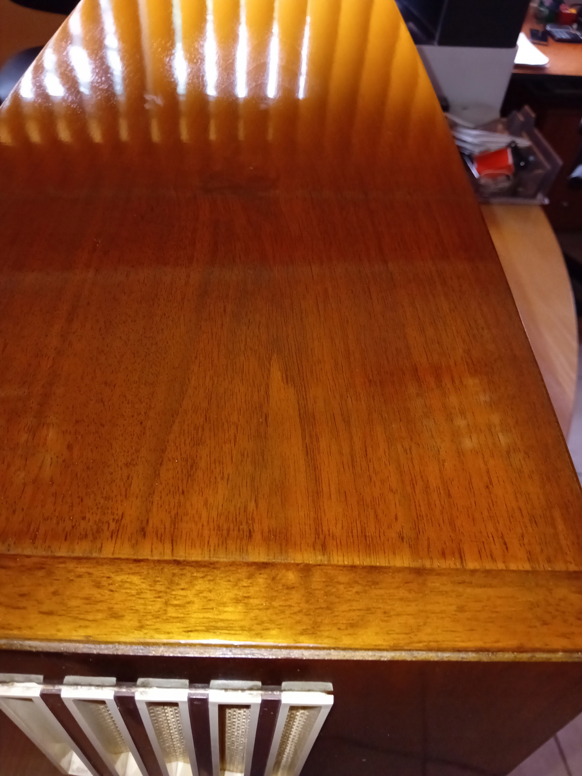 Odnowiony całkowicie fornir,doskonały wygląd obudowy przywraca radio do epoki lat 50.
