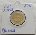 Moneta Obiegowa, 5 Złotych Z Roku 2009, Destrukt-Nadlewki, Ubytki Na "5"